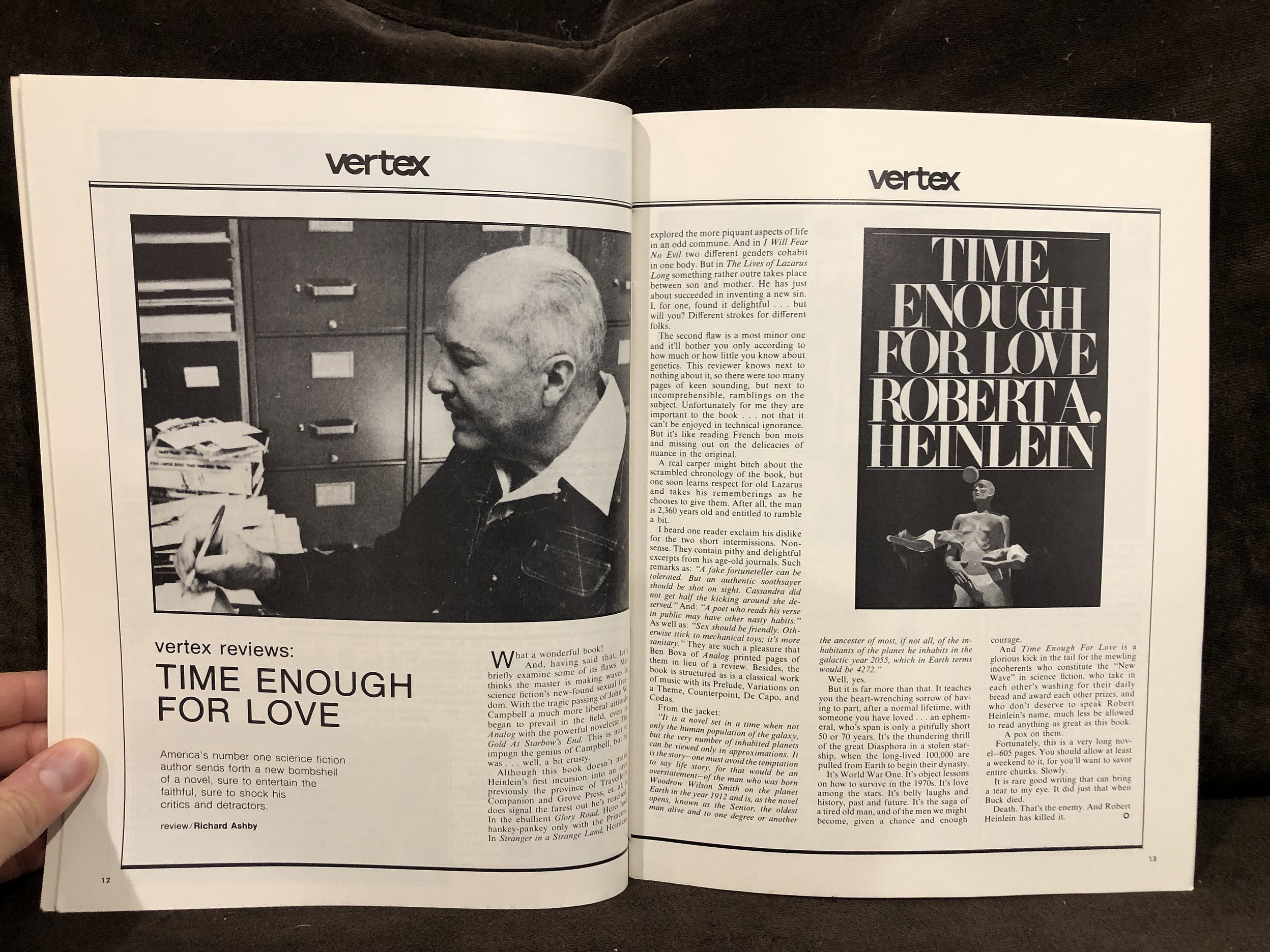 [править | править код]- Ashby R. Vertex Reviews: [Time Enough for Love] // Vertex: The Magazine of Science Fiction. — 1974. — Vol. 1, no. 4. — P. 12—13.